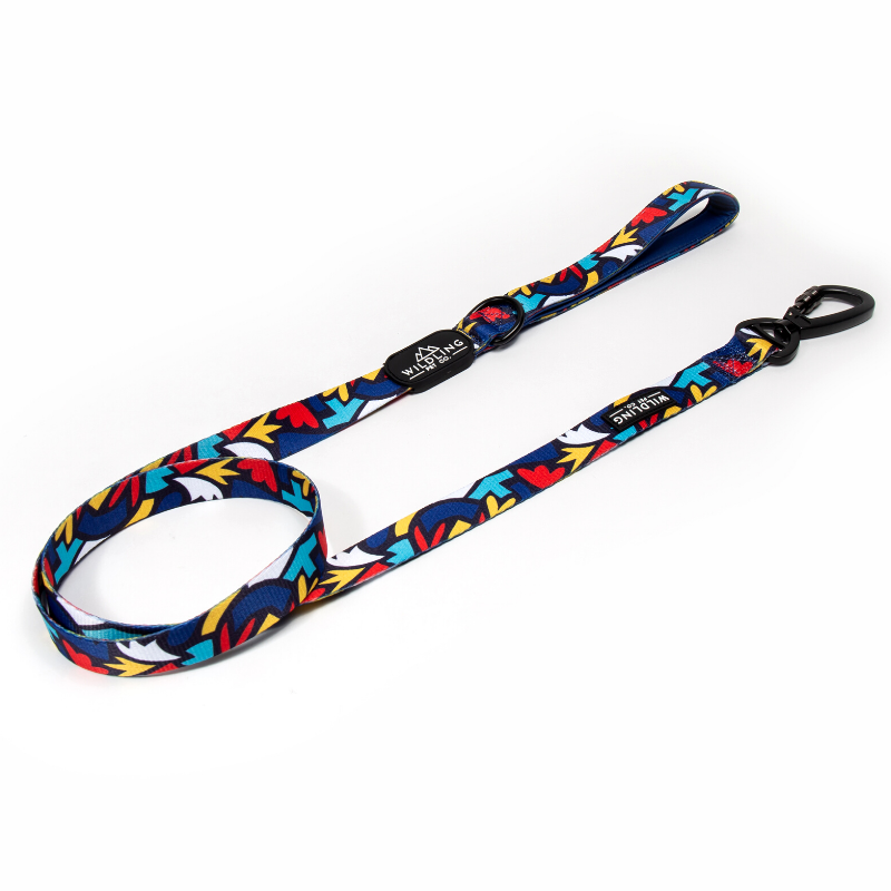The Fiesta Dog Leash from Wildling Pet Co. features a pattern of bright, colourful shapes inspired by the Gaudi mosaic wall in Barcelona.