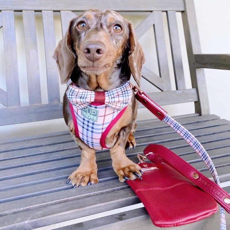 A truly stylish pup's wardrobe isn't complete without an iconic Plaid or Tartan dog harness like the Houndbury harness! The creamy plaid print is paired with a gorgeous deep merlot red to give you an outfit that will be the envy of all other dogs in your neighbourhood who will be whispering jealousies as you walk on by!