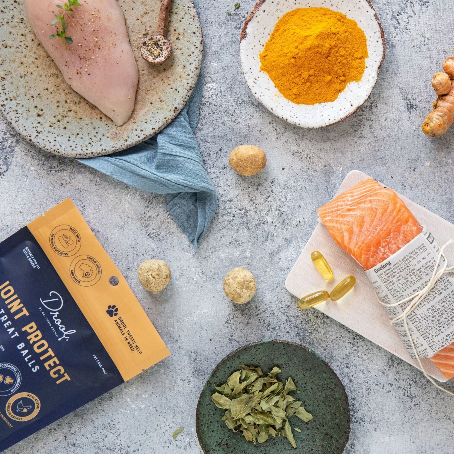 A deluxe treat ball that will have your dog’s joints jumping for joy thanks to glucosamine, chondroitin, collagen, turmeric, fish oil and real Aussie chicken breast as the number one ingredient. These are a favourite for dogs with arthritis and joint pain.