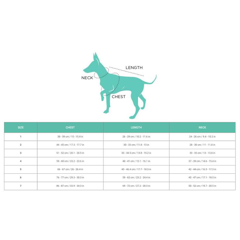 | SIZE | CHEST | LENGTH | NECK | BREED GUIDE |