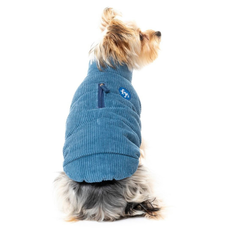 The Mosman Puffer Dog Jackets in Washed Blue from FuzzYard is the ultimate in comfort and warmth for your dog during walks or lounging around at home.