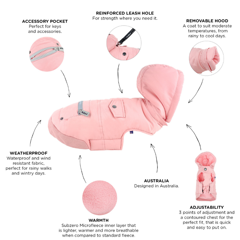 Designed in Australia, this modern dog coat offers a range of innovative features to keep your pup warm and dry during the cooler, wetter months.