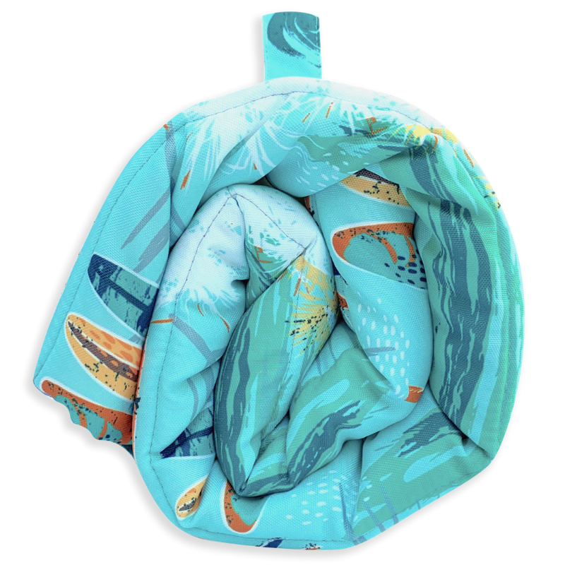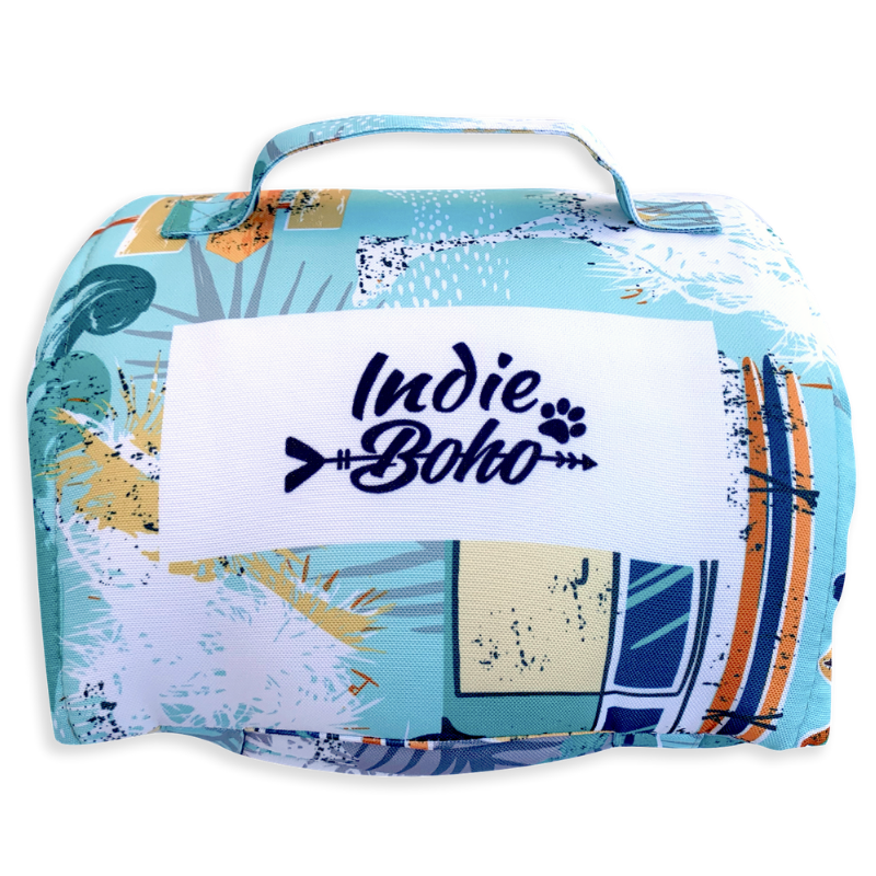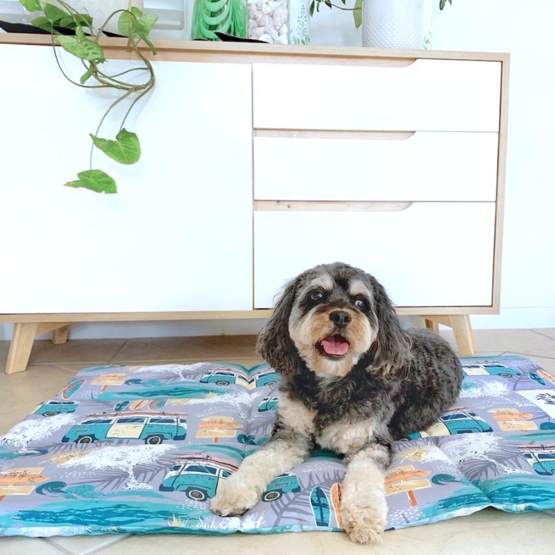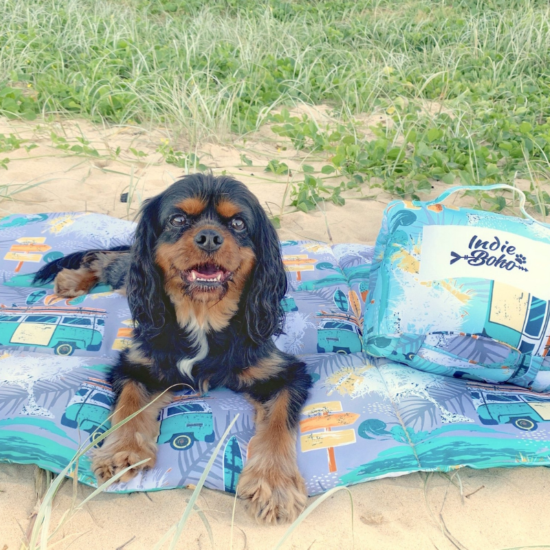 The Byron Surf Travel & Training Mat from Indie Boho is a super practical pet product for dog owners. It can be fully rolled out or folded in half so that it will easily fit into smaller spaces such as underneath cafe tables or at your work.