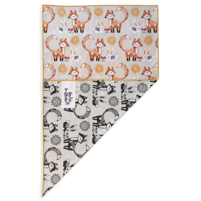 Foxy Tales has been beautifully illustrated by Australian artist Debi Hudson. This quick-dry towel will accompany the bed and blanket perfectly in your home. It features a fox and rabbit, with the addition of a sun, on a cream-beige background.