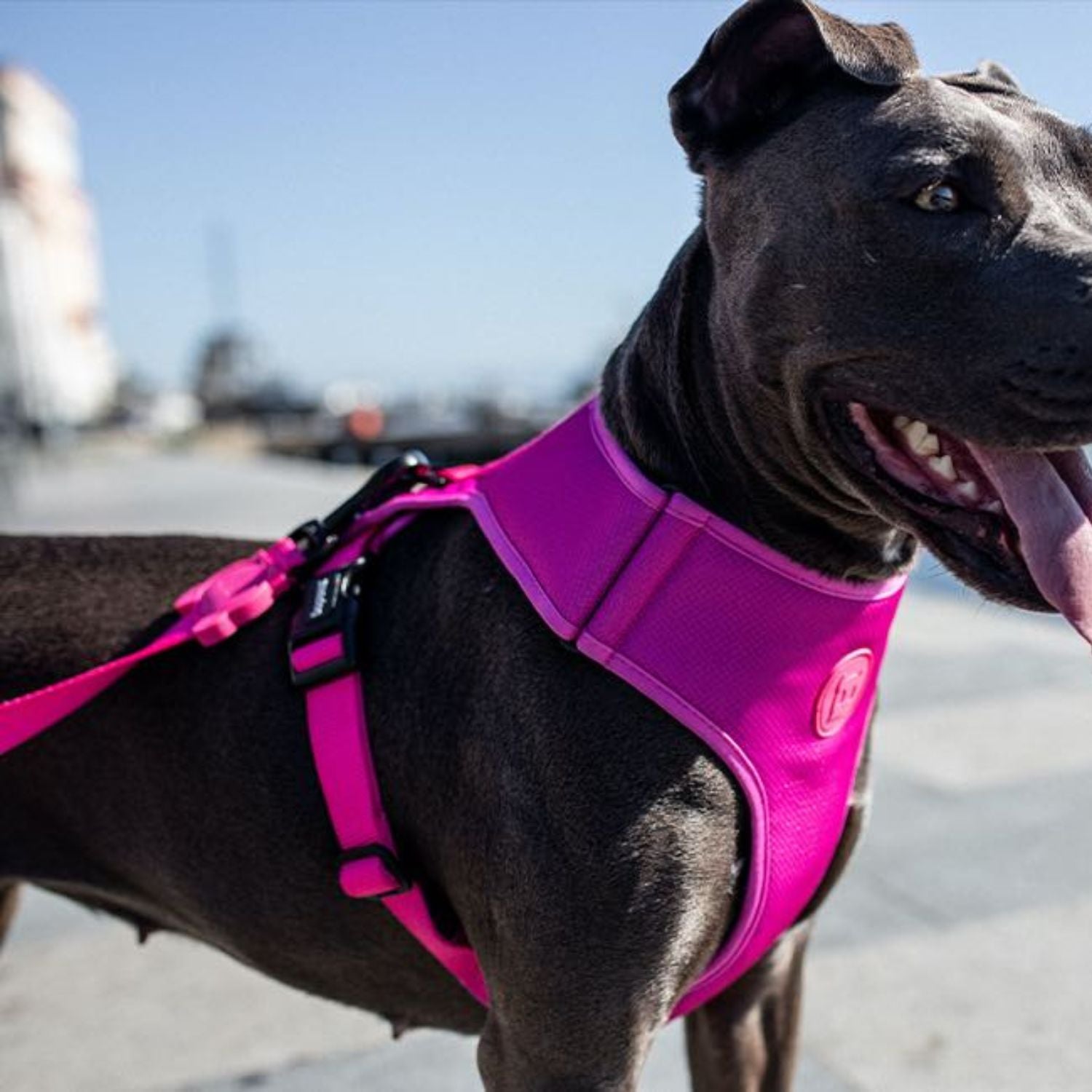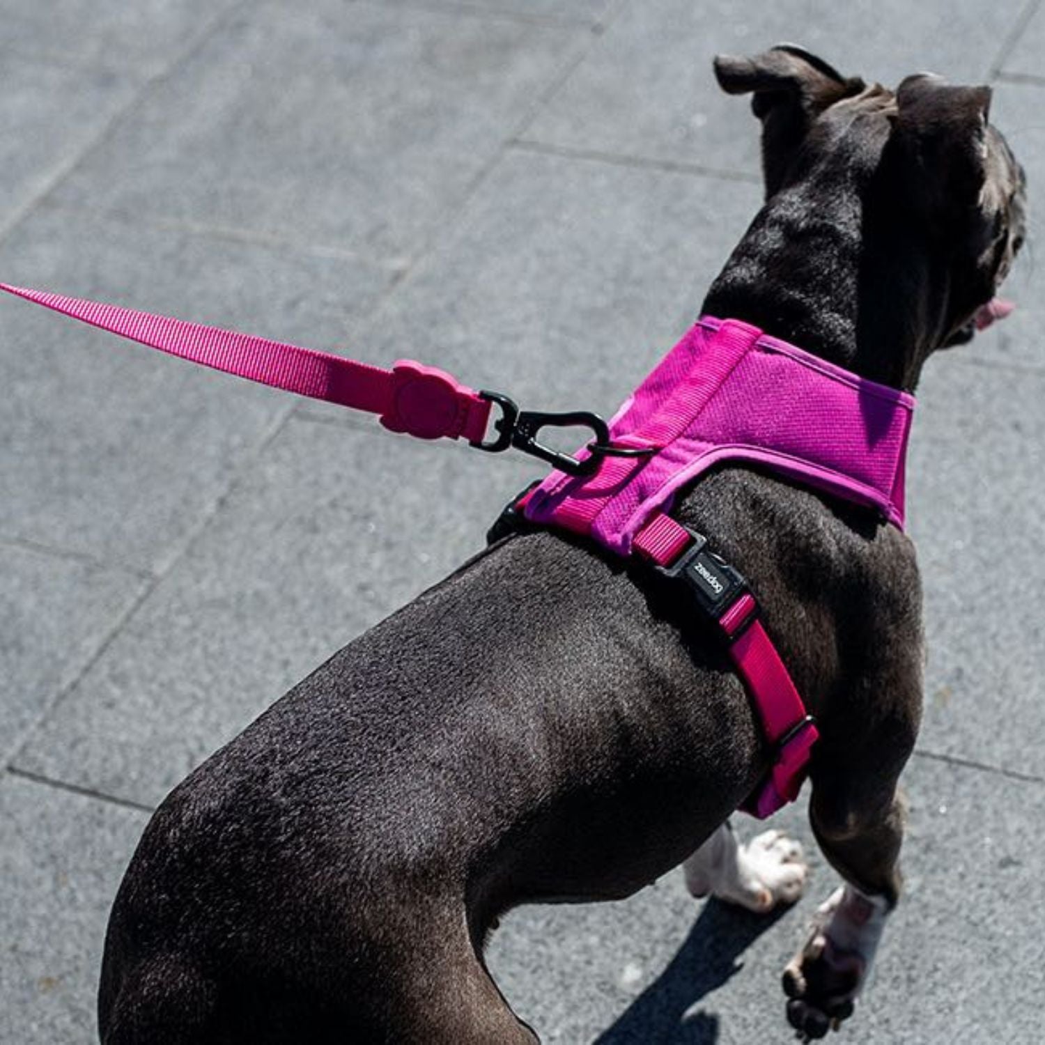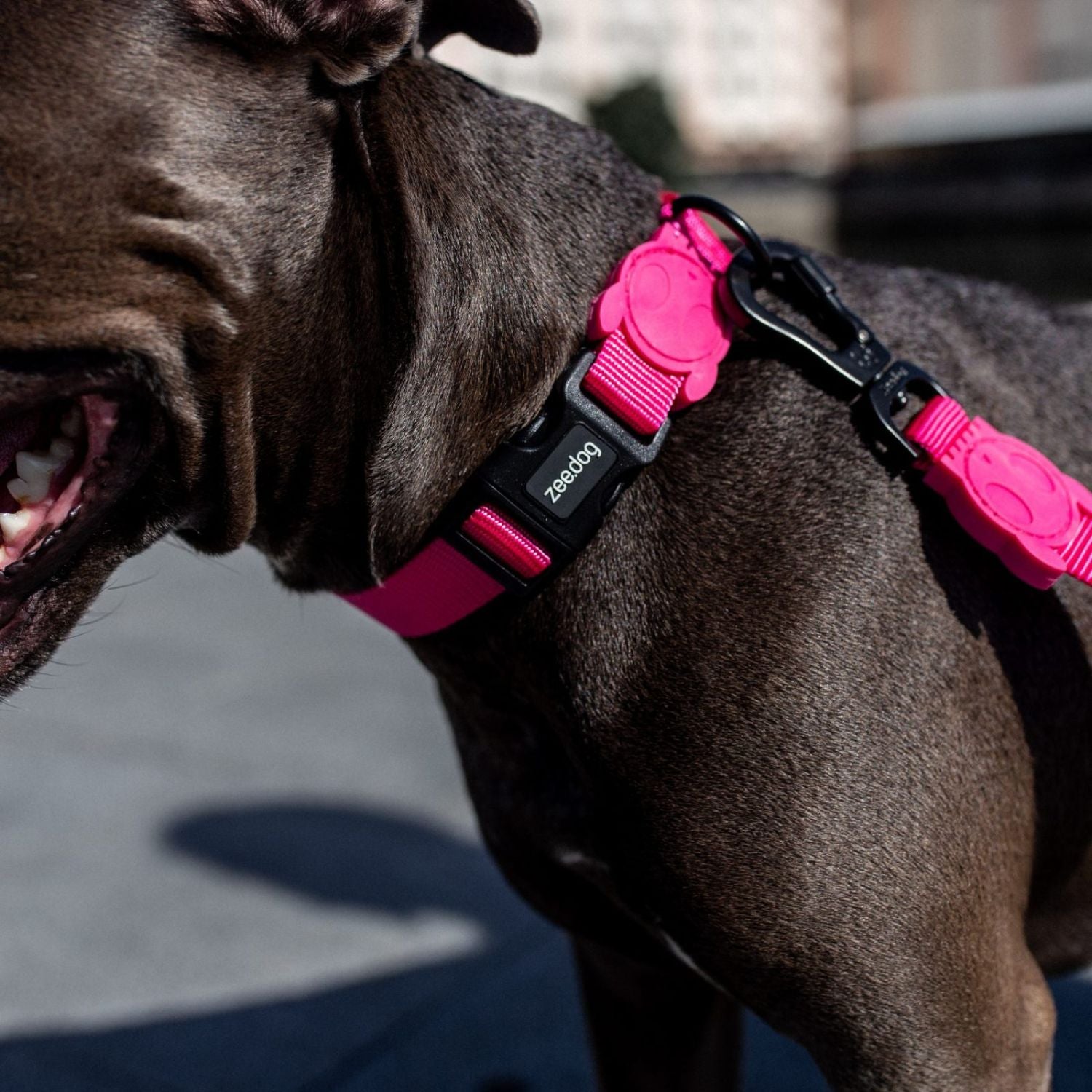 The Pink LED Dog Leash from Zee.Dog is for those who love a striking pink, complemented with a black clasp. This design is for doggos who want to be seen down the park!
