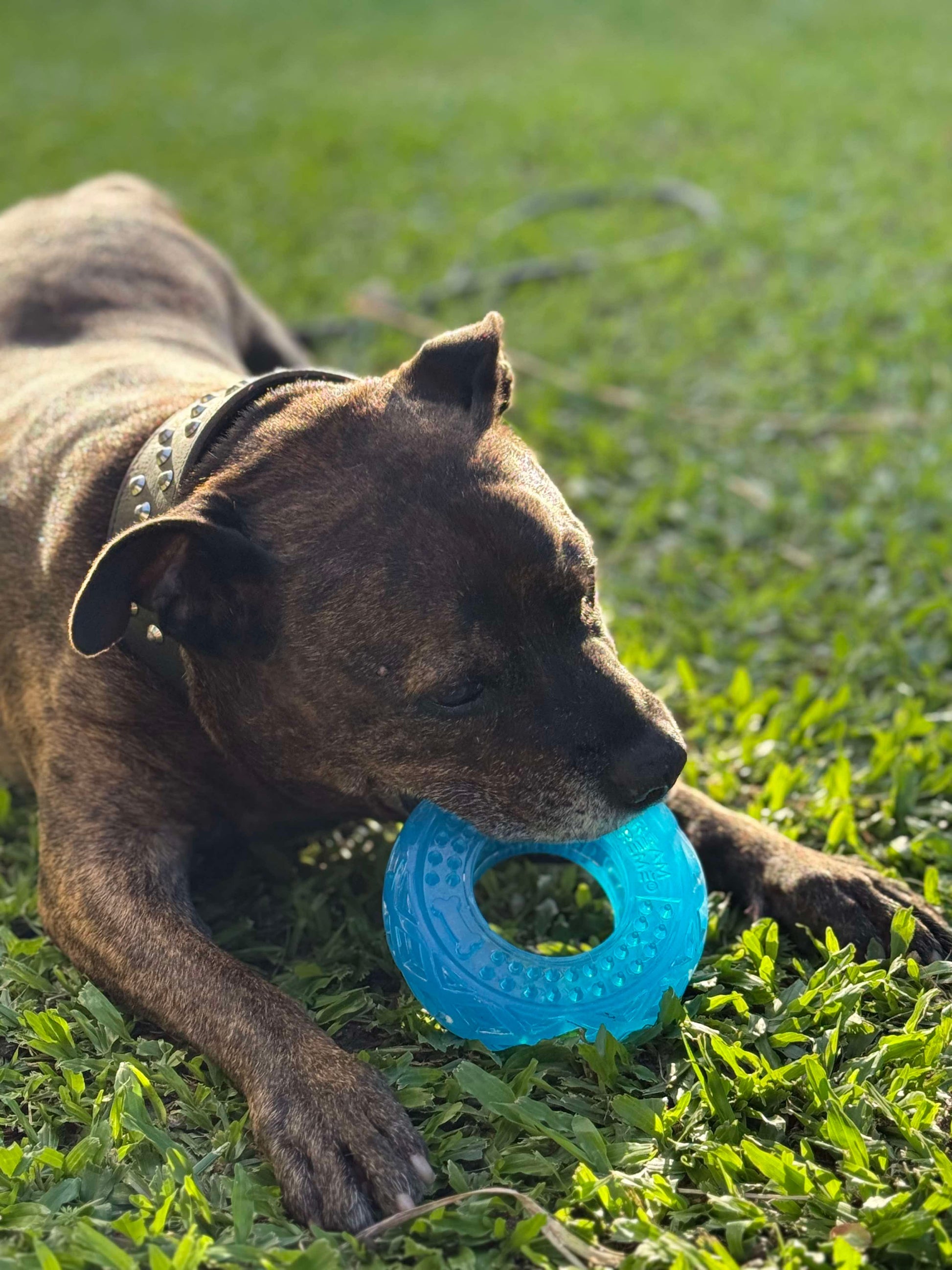 Crash the Staffy can 'test' lesser toys to shreds in minutes. After months of rigorous, vigorous testing Crash reports that his Scream Xtreme Treat Tyre is effectively unscathed.