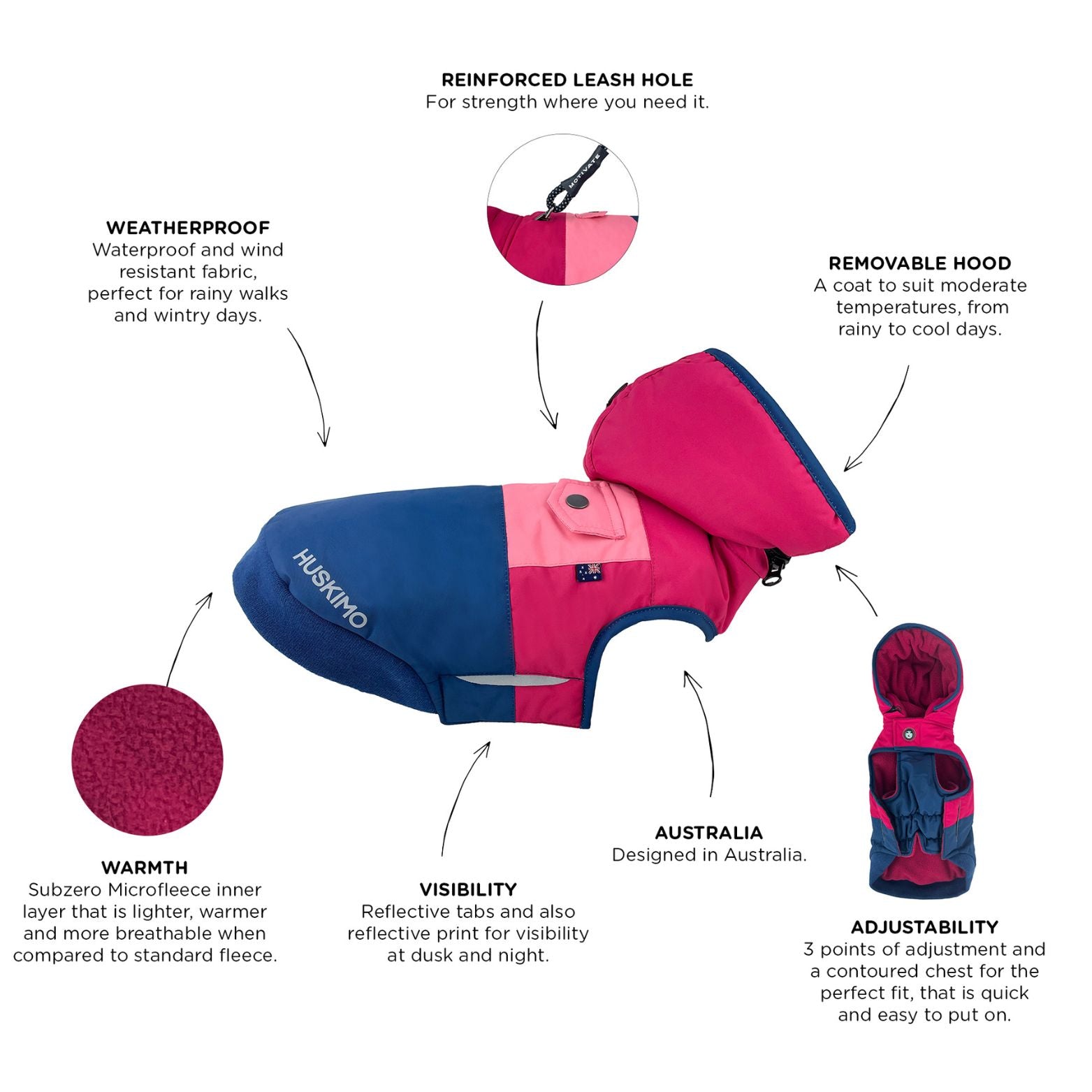 From the Aussie leaders in dog-wear, Huskimo, comes the stylish new Snow Parka Waterproof Dog Coat in a striking pink design.