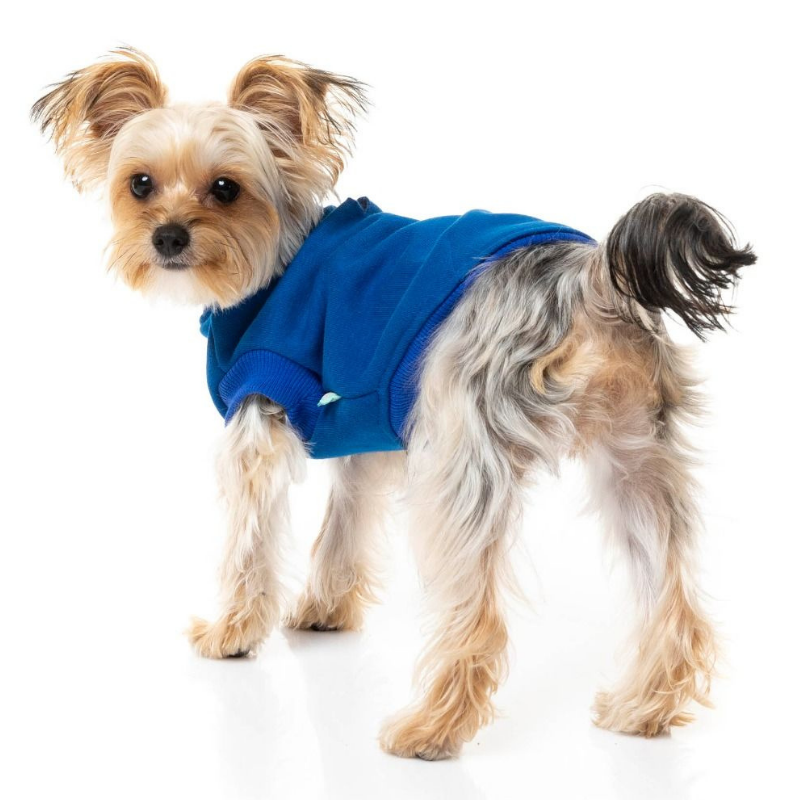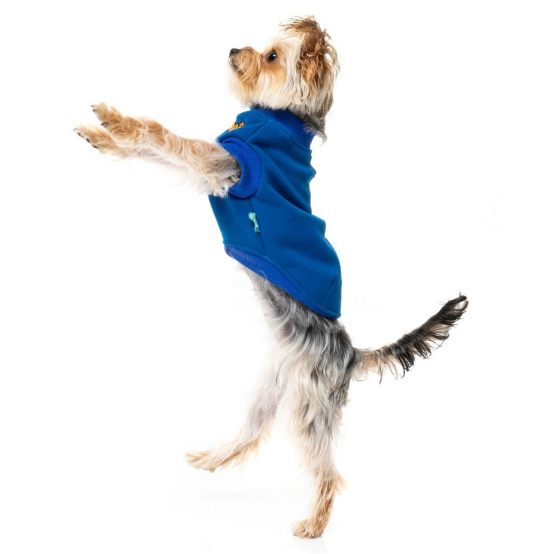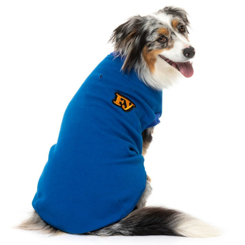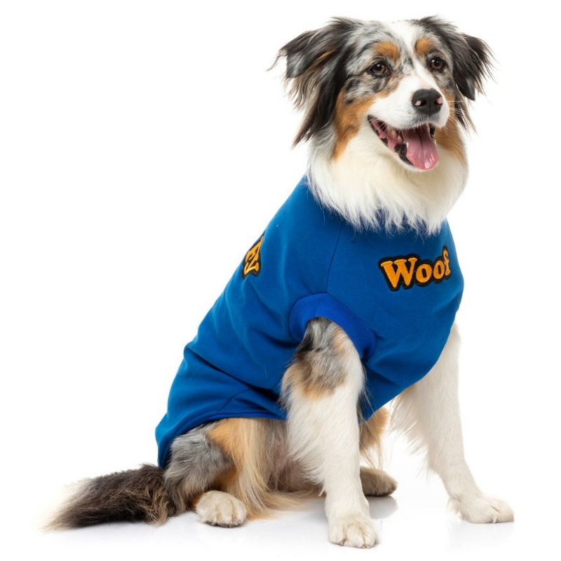 The Woof Sweater in Blue by FuzzYard has a su-paw soft interior and is designed with a relaxed fit and elastic cuffs, neckline and hem to ensure a good fit and to keep in the warmth.